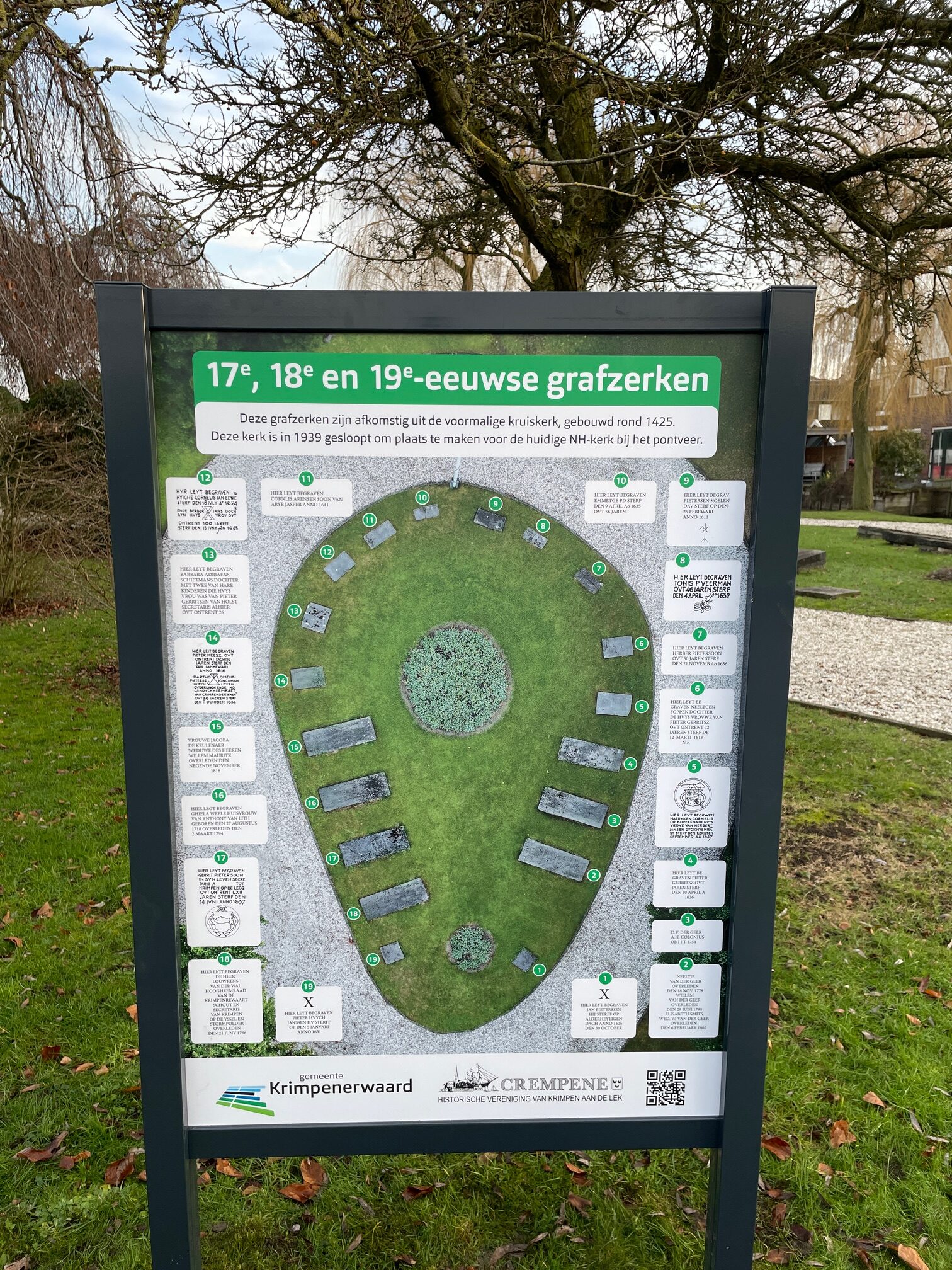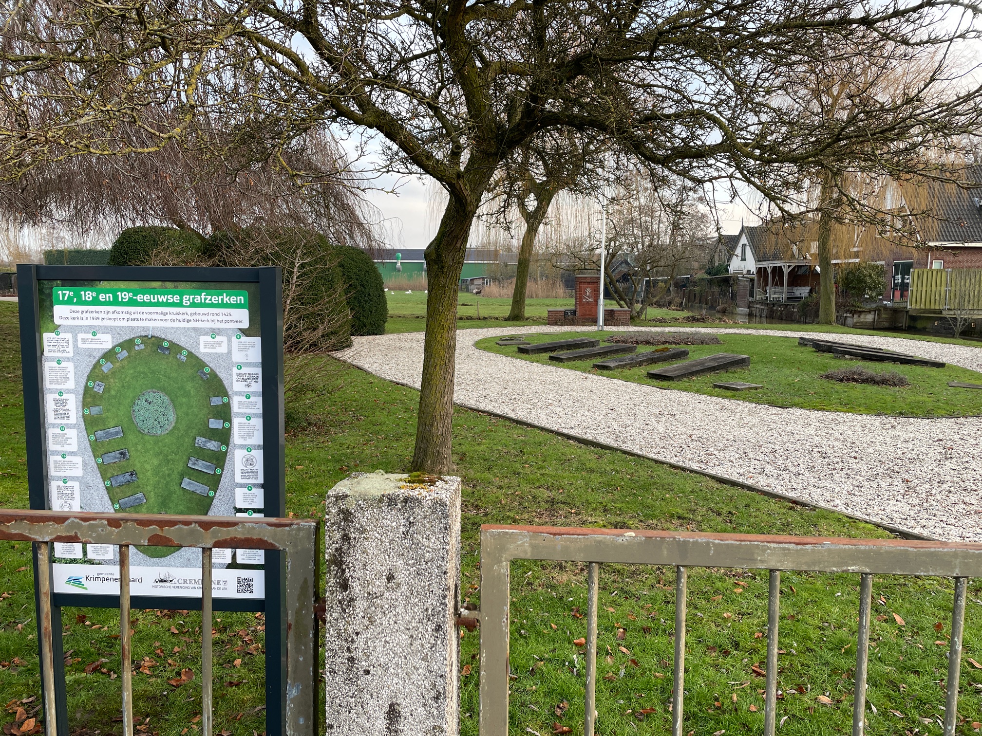 Nu is er een bord geplaatst aan de Molenweg in samenwerking met de gemeente Krimpenerwaard met de teksten die op de zerken staan. Zodat de informatie van de zerken weer leesbaar is.